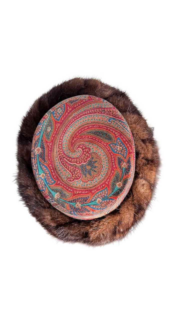 •Color palette: Deep wine, teal, and muted gold paisley with rich brown fur